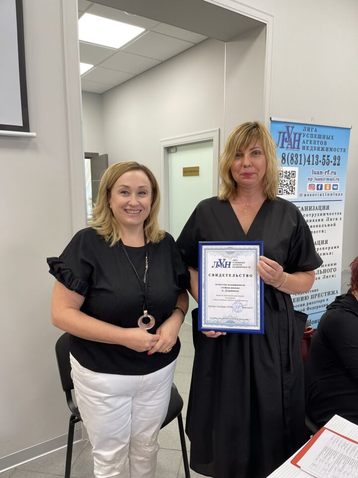 Ряды Ассоциации усилили агентство недвижимости из Дзержинска «Азбука Жилья», руководитель Галия Рашидовна Сайфетдинова, и кстовская компания «Веста» под руководством Ирины Николаевны Малышевой. Президент «ЛУАН» Ольга Миронова поздравила коллег со вступлением и вручила им Свидетельство о членстве в профессиональном объединении риэлторов нижегородского региона.